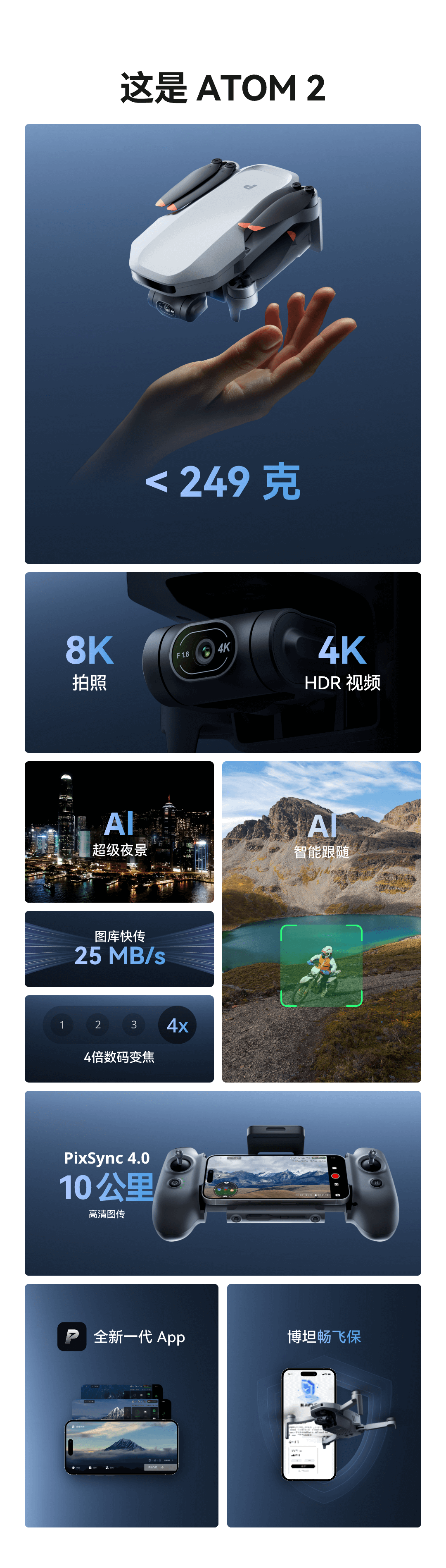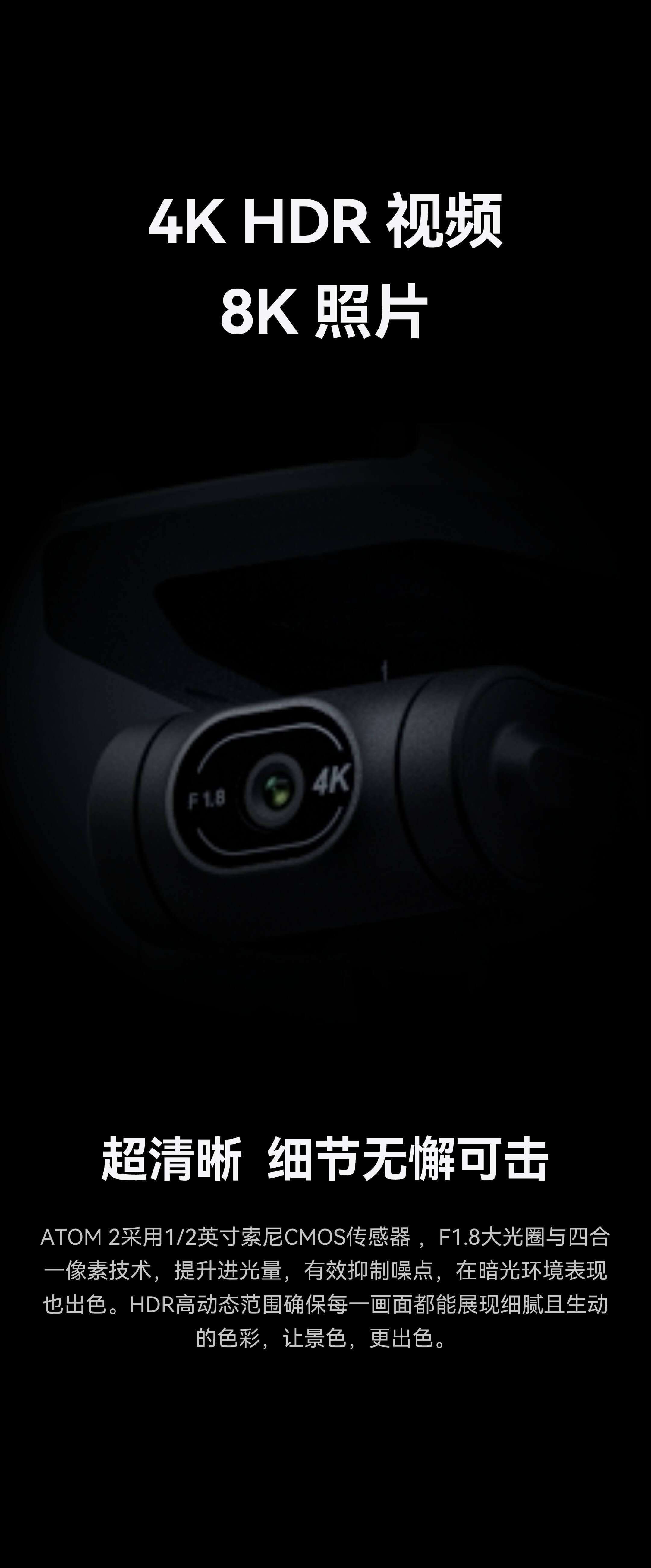 全新夜景模式采用AI算法技术,有效抑制噪点。让您在夜间轻松捕捉清晰纯净的视频画面。无惧黑暗,ATOM 2和ATOM 2S带您领略身临其境的夜景之美。