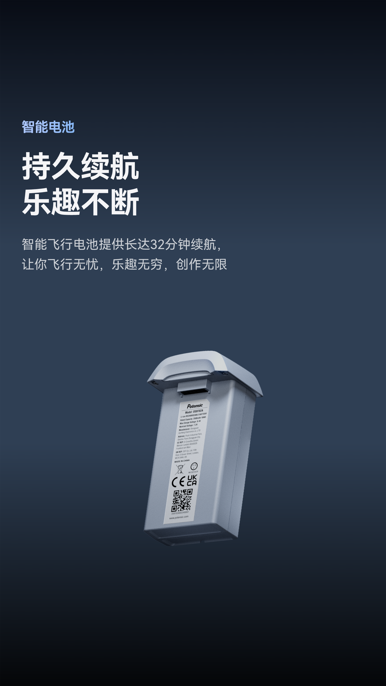 智能飞行电池提供长达32分钟续航[4],让你飞行无忧,乐趣无穷,创作无限。